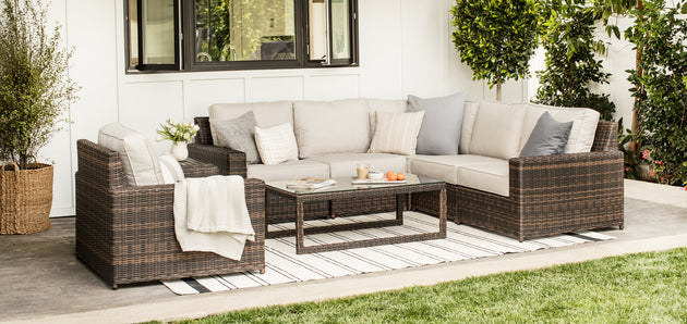 With its wide wicker arms, plush seat cushions and modular design, it's no surprise that the Langdon Collection is our best seller.