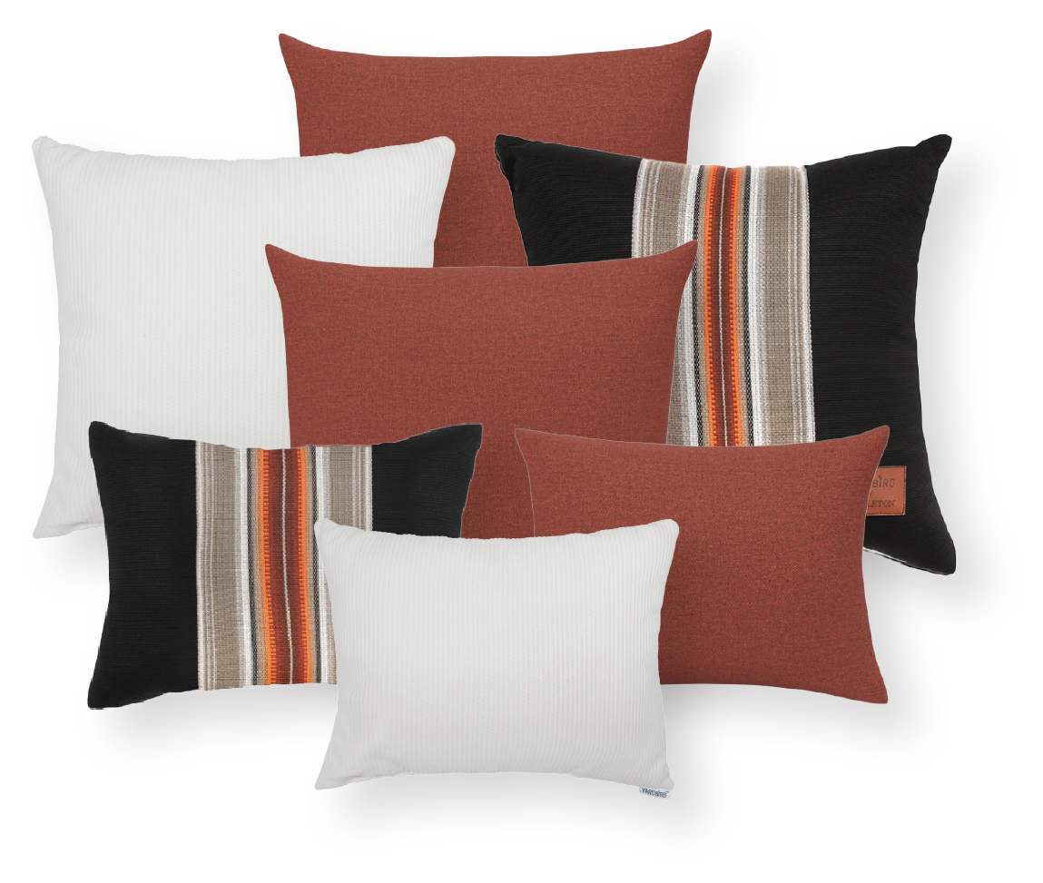 Our outdoor throw pillows are made from premium Sunbrella® fabrics to give you the same level of stain, fade and water-resistance that you've grown accustomed to with our cushions.