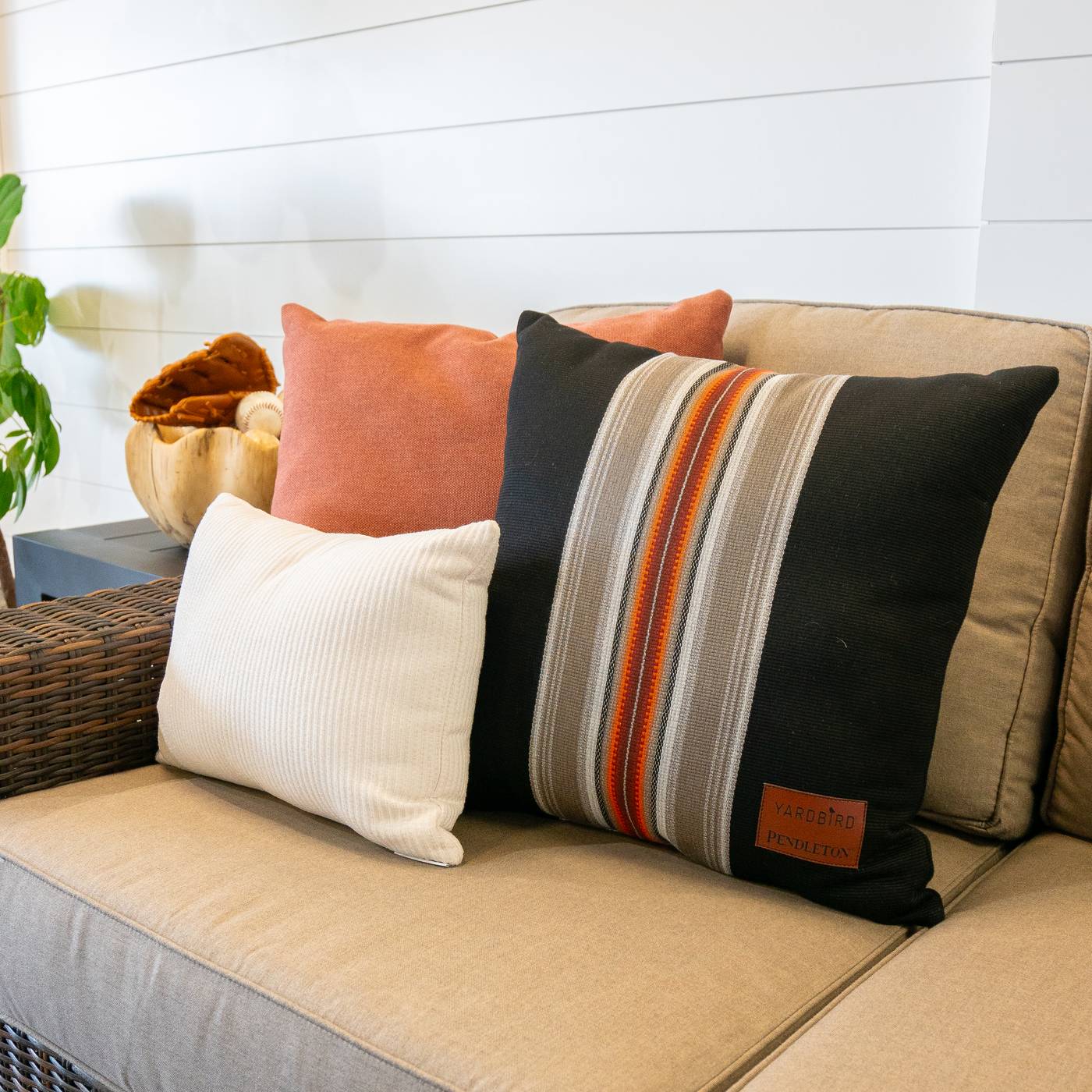 Our outdoor throw pillows are made with premium Sunbrella fabrics to ensure they'll withstand the test of time.
