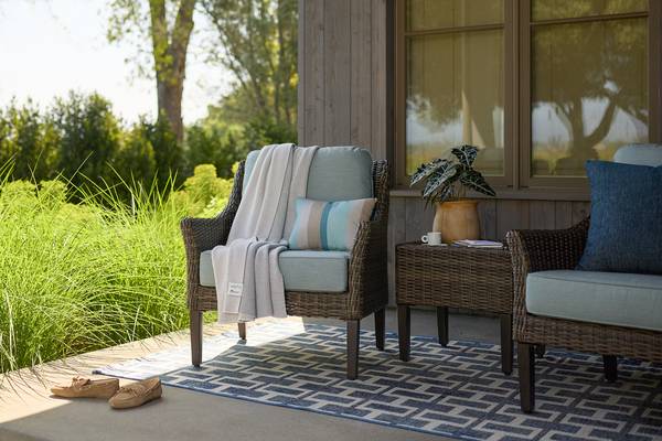 Grey-toned wicker complements your choice of silver or mist fabrics for a timeless, neutral color palette.
