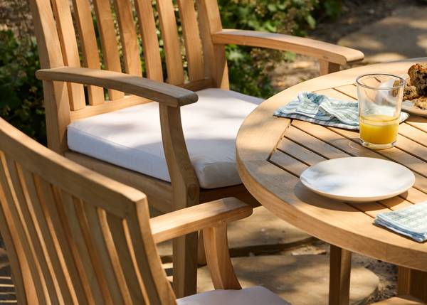 We recommend applying a teak sealer annually to maintain the furniture’s golden brown appearance. Learn more about caring for teak in our Care and Maintenance Guide.