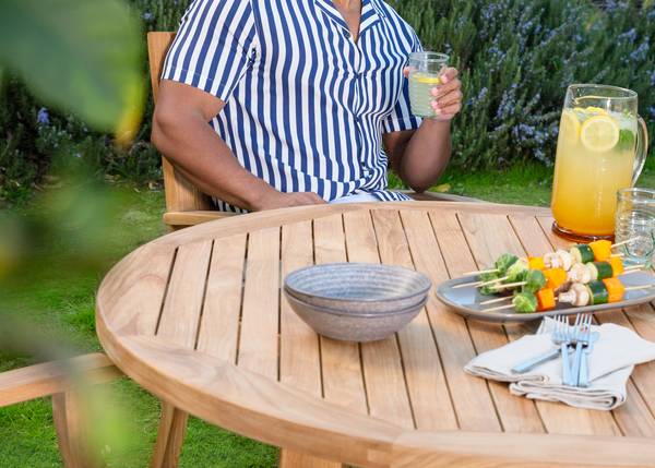 We recommend applying a teak sealer annually to maintain the furniture’s golden brown appearance. Learn more about caring for teak in our Care and Maintenance Guide.