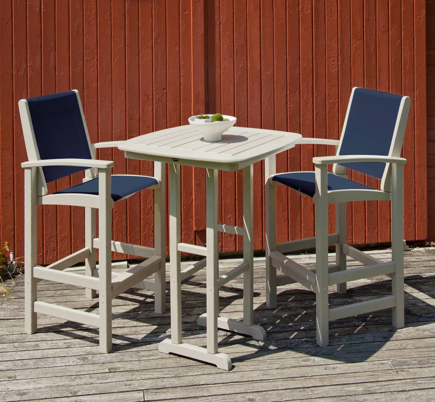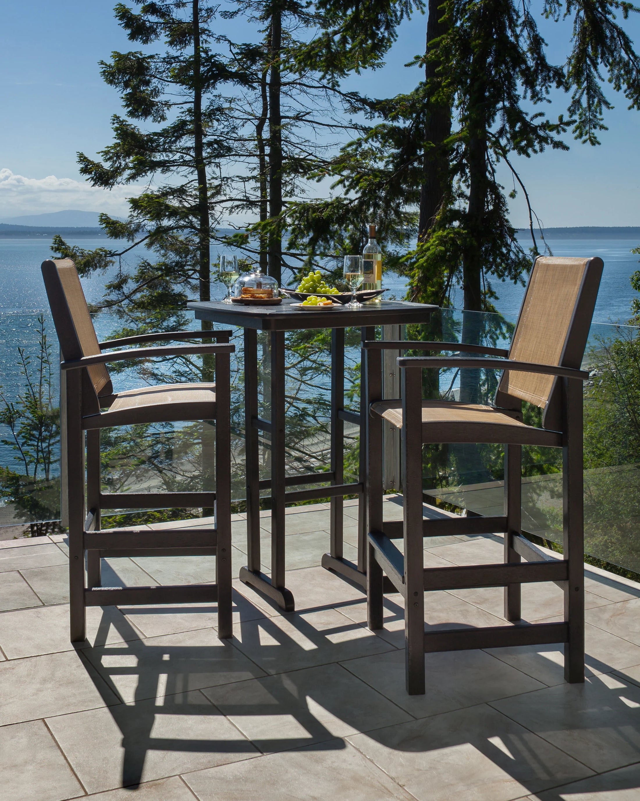 Designed with materials that withstand all the elements, the Coastal Bar Chair features a durable frame and all-weather sling seats for a resort-inspired look and feel.